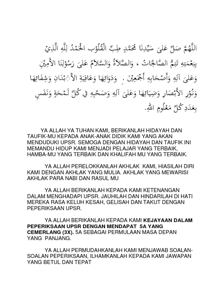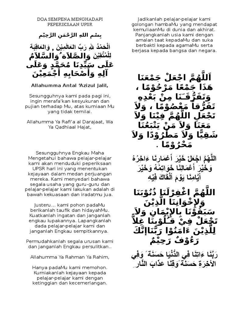 Doa Untuk Hadapi Peperiksaan Upsr Pdf